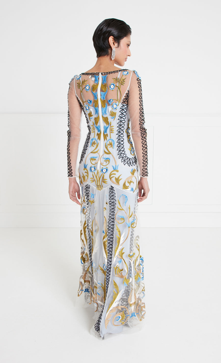 Committed to creating unique and original textiles, the Temperley team designs lace and woven fabrics in-house at our atelier, which are then crafted by our trusted partners at expert mills across the globe. We utilise best quality Italian tulle, soft and sheer, perfectly structured with a flawless drape. Another staple material includes luxurious silk, woven to create a lustrous effect, with a smooth and radiant finish, perfect for eveningwear.