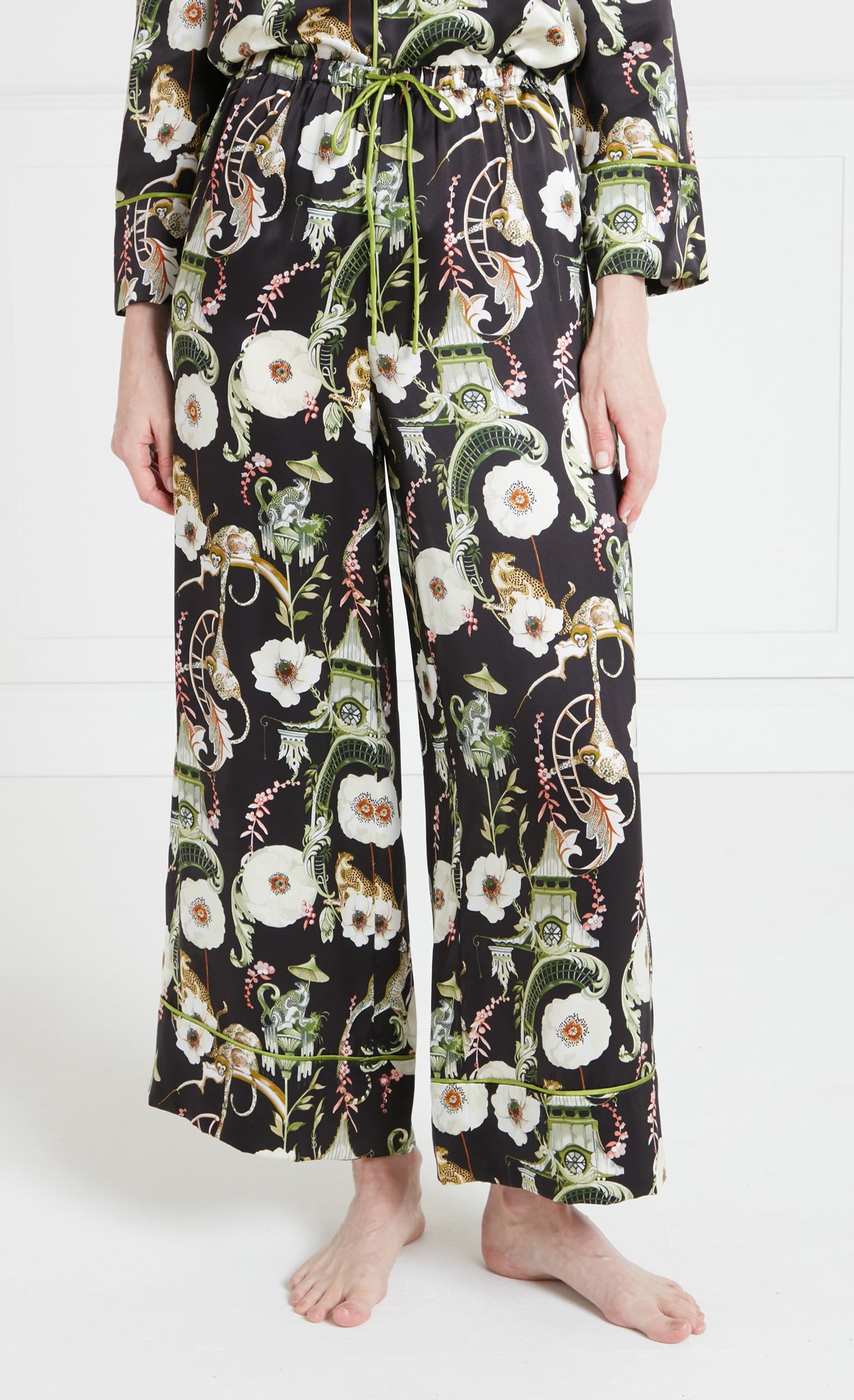 Designed for the woman who values both comfort and a touch of vintage-inspired luxury, the Aphrodite silk pyjama bottoms make the ultimate gift. They offer both freedom of movement and sophistication, cut straight-legged and falling to a full length. An elasticated waistband ensures a snug yet comfortable fit.