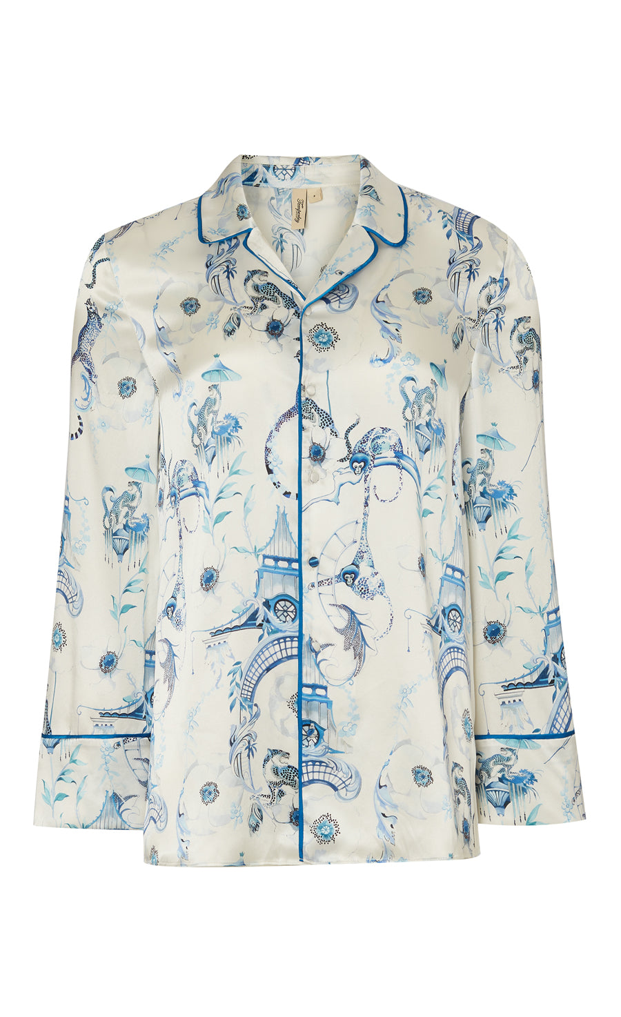 Aphrodite Long Sleeve Pyjama Top - White/Blue-Euphoria