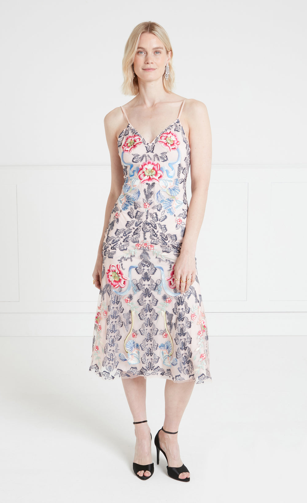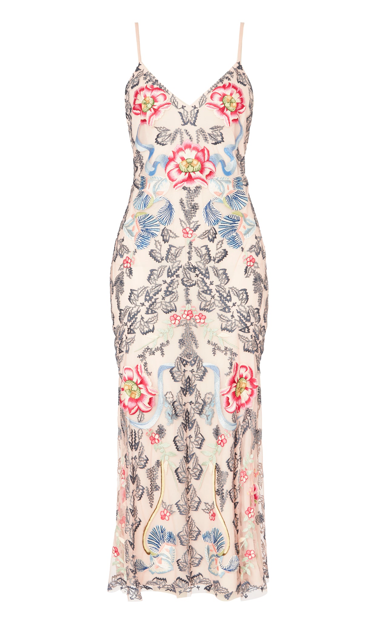 Exquisite full-stitch embroidery, engineered across the tulle overlay, highlights signature Temperley craftsmanship and standout patterns. It's crafted from stretch double georgette for comfort and layered with delicate tulle for depth and texture.