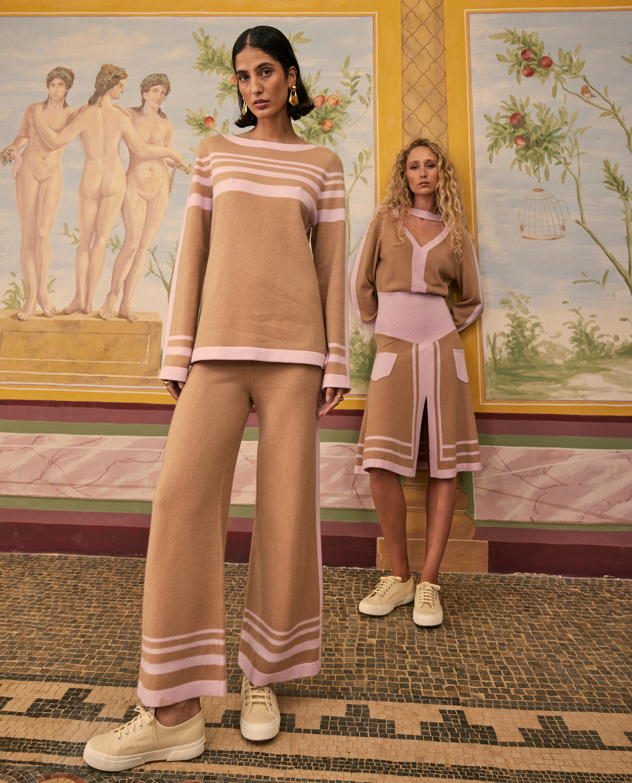 With its relaxed fit and stripe details, the Bretton Knit Trousers make for luxurious everyday loungewear. They feature an elasticated waist and wide cropped leg.