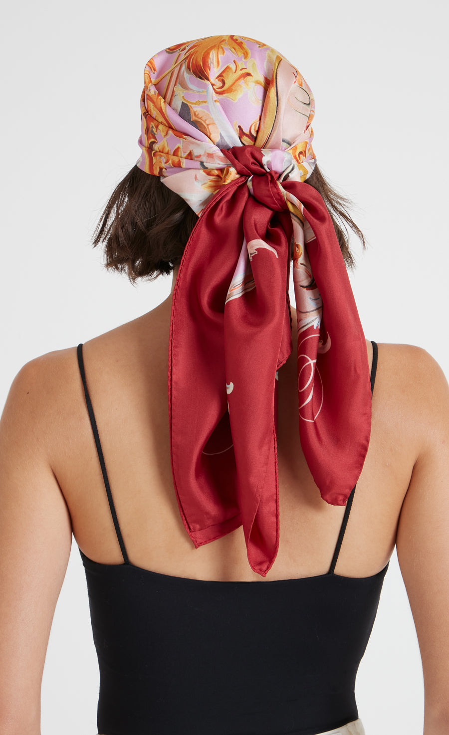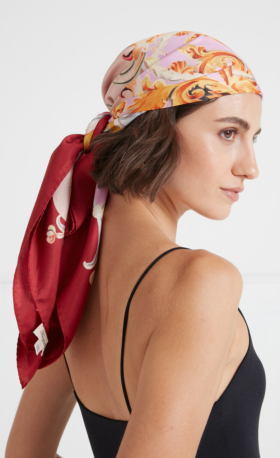 An iconic accessory for at home or away, the Carline print scarf exudes a timeless elegance, worn over the hair or tied at the neck for a dandy finishing touch.