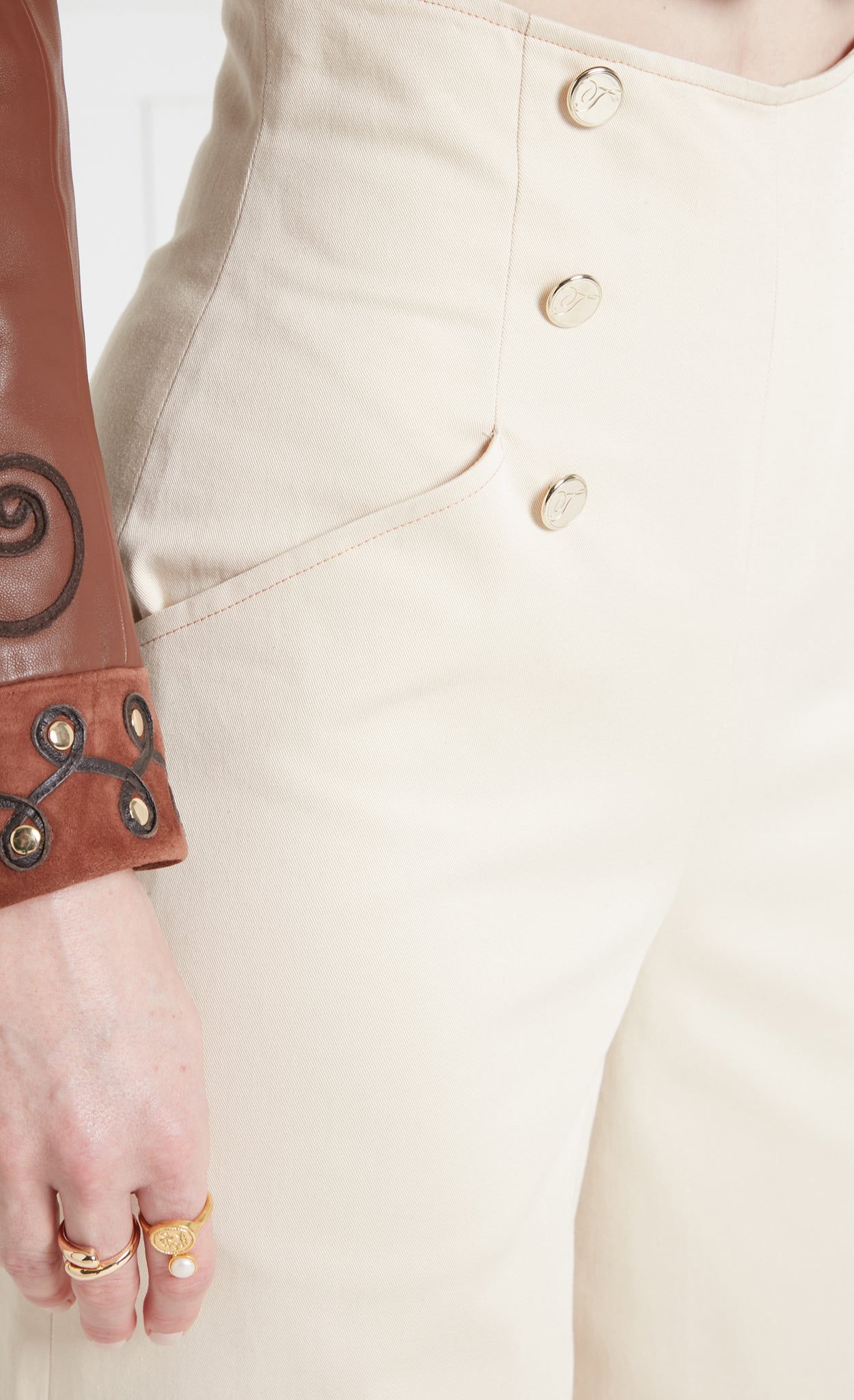 Combining a classic military style with a modern twist, the tailored Castell trouser is a high-waisted palazzo style which elongates the body. Their elegant and streamlined look is versatile enough to be styled up or down.