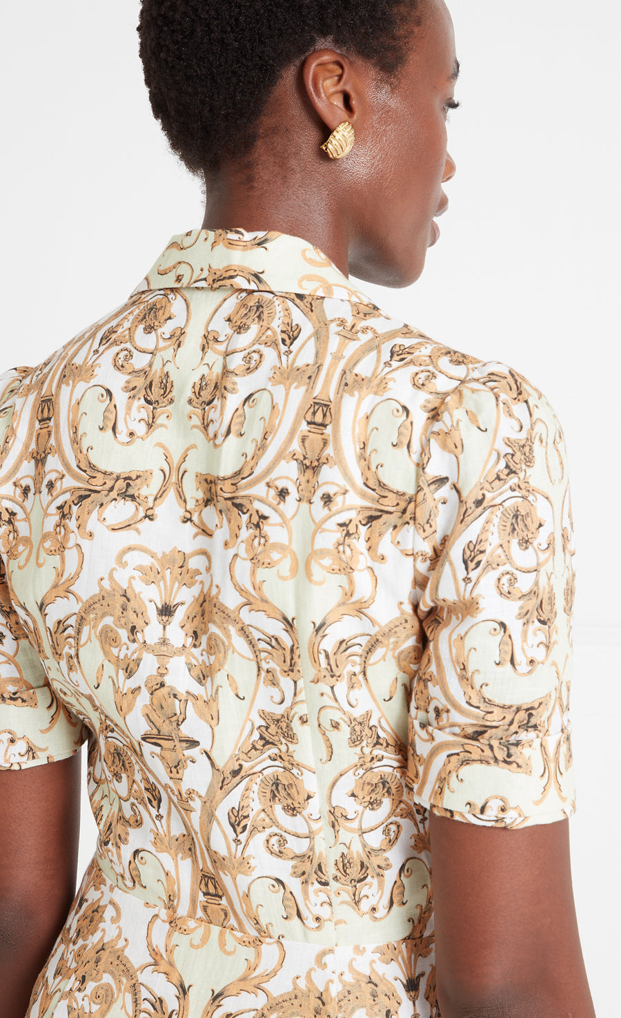 Temperley prints are painstakingly hand-painted in-house. Motifs are collaged onto the body then lovingly engineered into compositions that work in harmony with the garment’s panelling, ensuring the printed fabric flows flawlessly across seam joints when the garment is constructed. The process is both meticulous and spontaneous, with an outcome that is truly unique and artisanal.