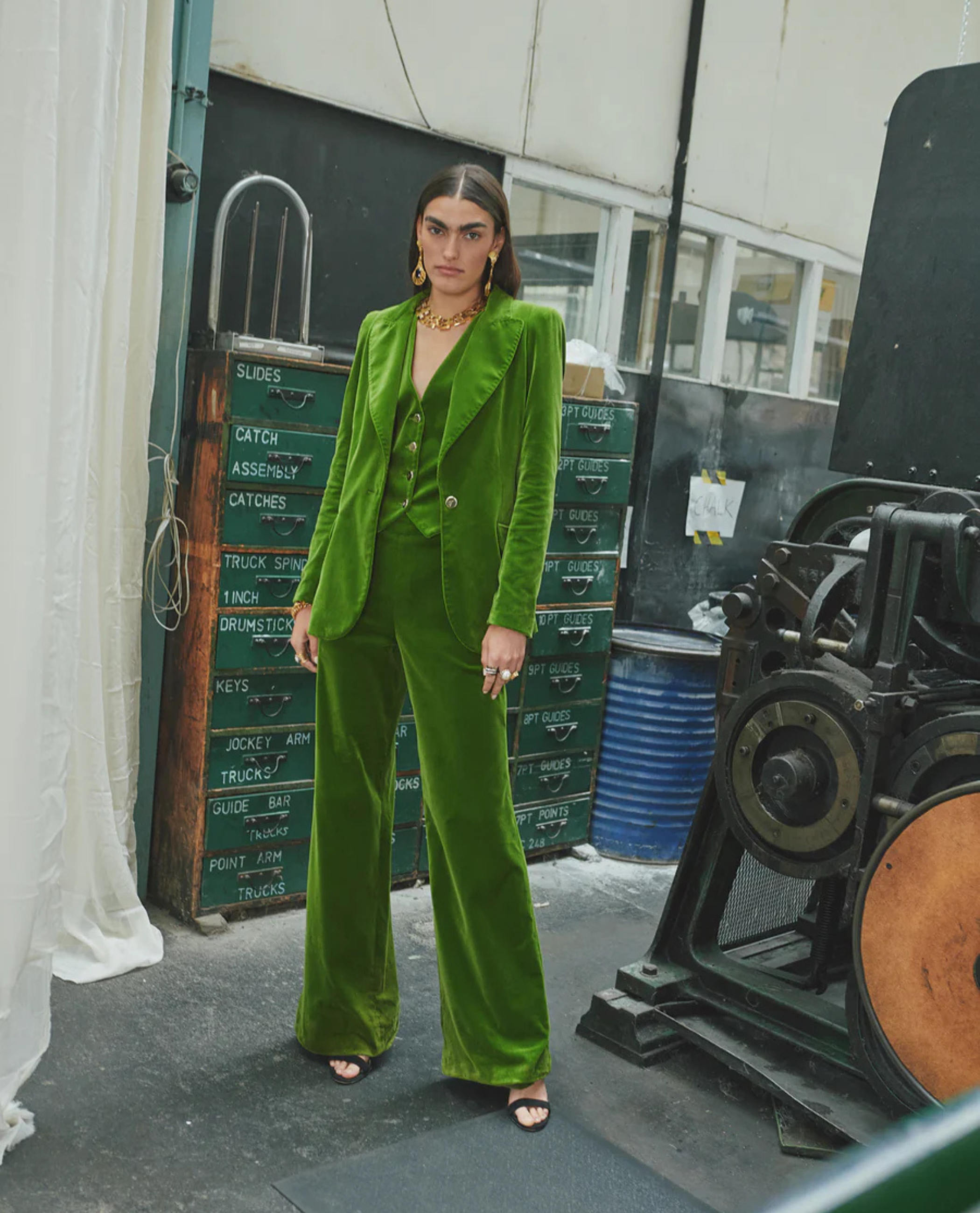 The immaculately tailored trio is crafted in Italy from luxurious Italian velvet, with 2% elastane for comfortable movement and structure.