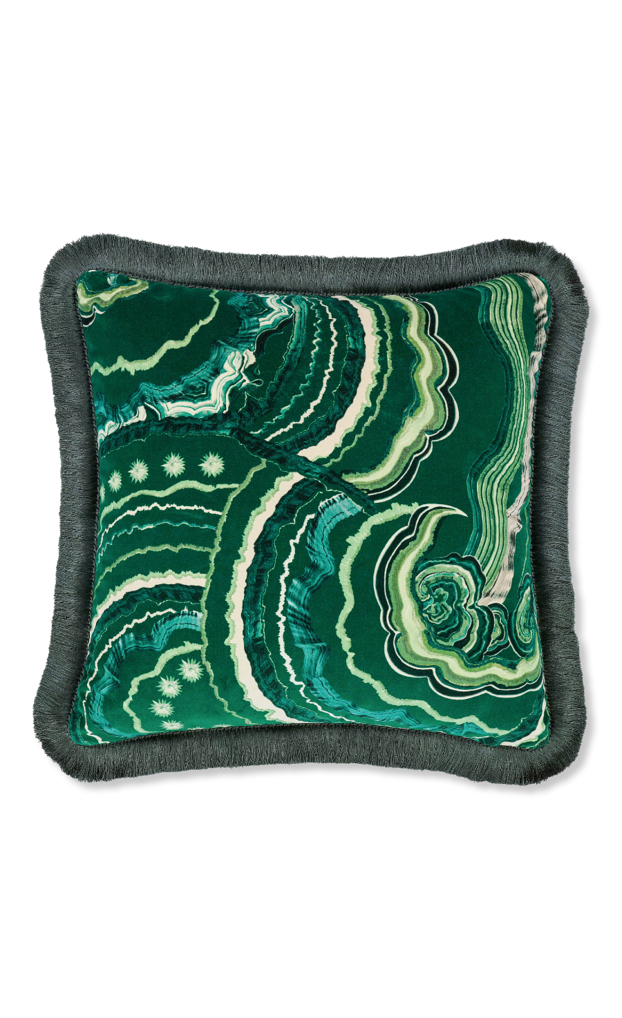 A sumptuous, deep pile velvet cushion featuring a hypnotic display of agate inspired swirls that exudes a psychedelic sophistication. More.