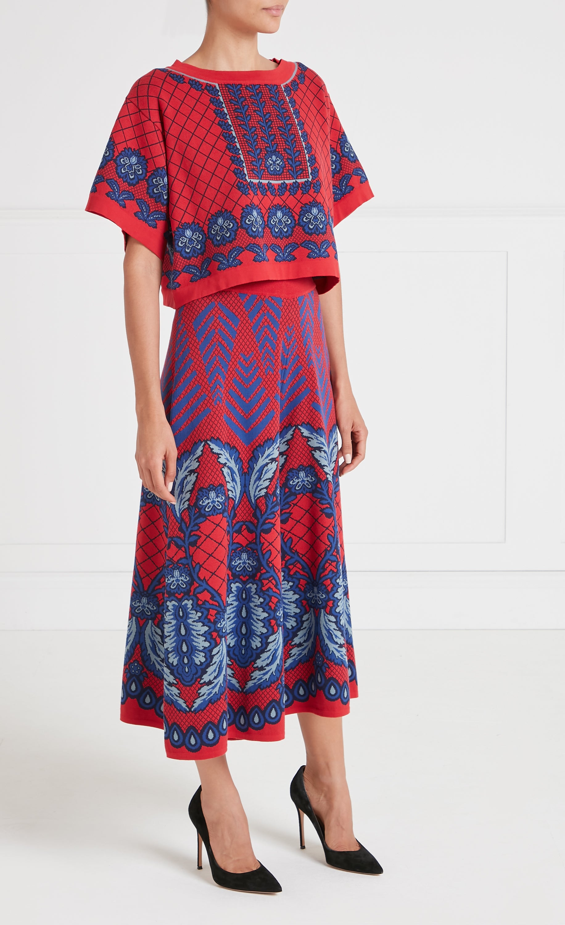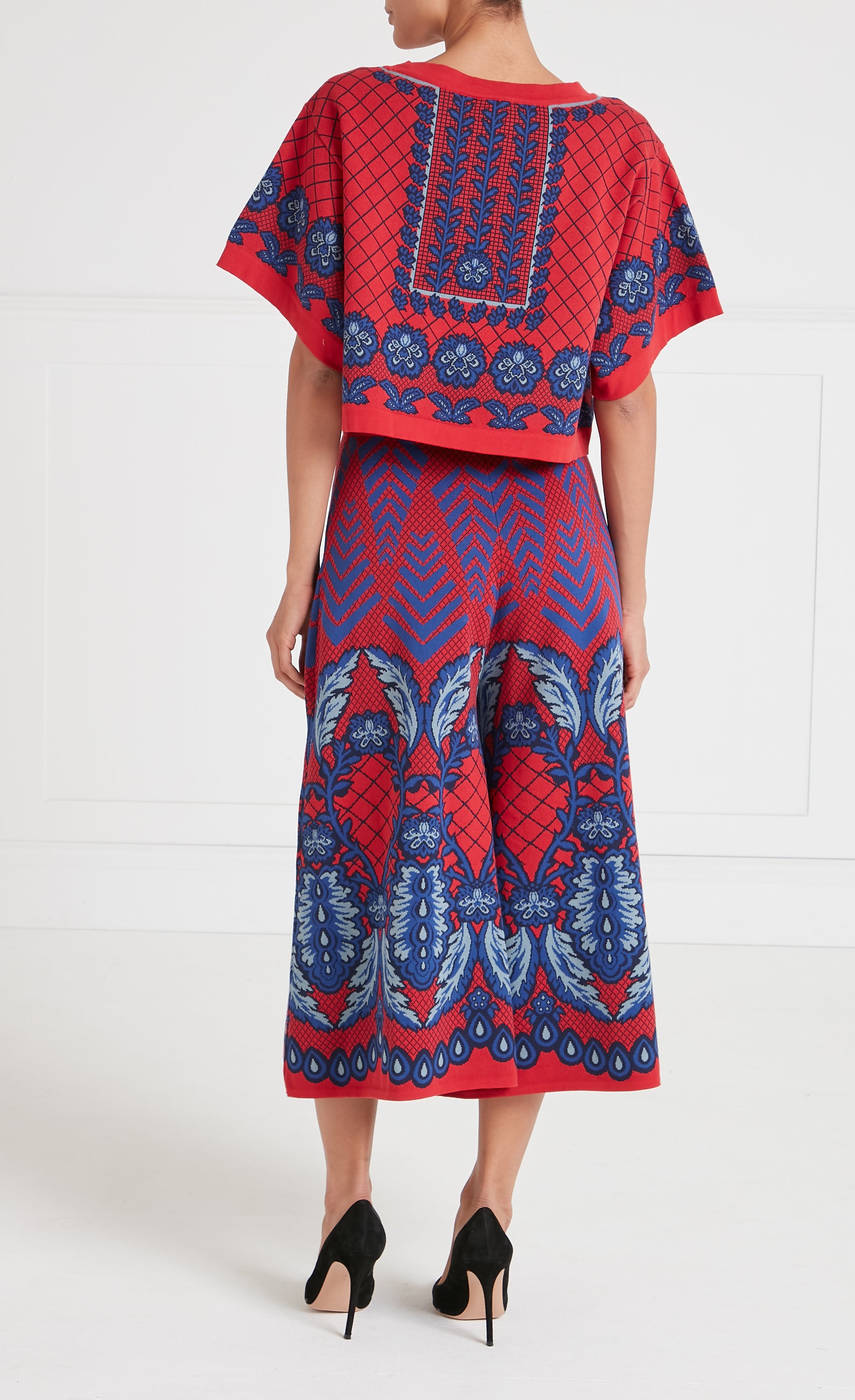 A bold statement in pattern and comfort, the Francis Grid Knit Trousers draw inspiration from our archives. The wide-leg silhouette is softened with an elasticated waistband, offering comfort. The intricate grid and floral motifs flow seamlessly down the length, creating a dramatic yet wearable impact.