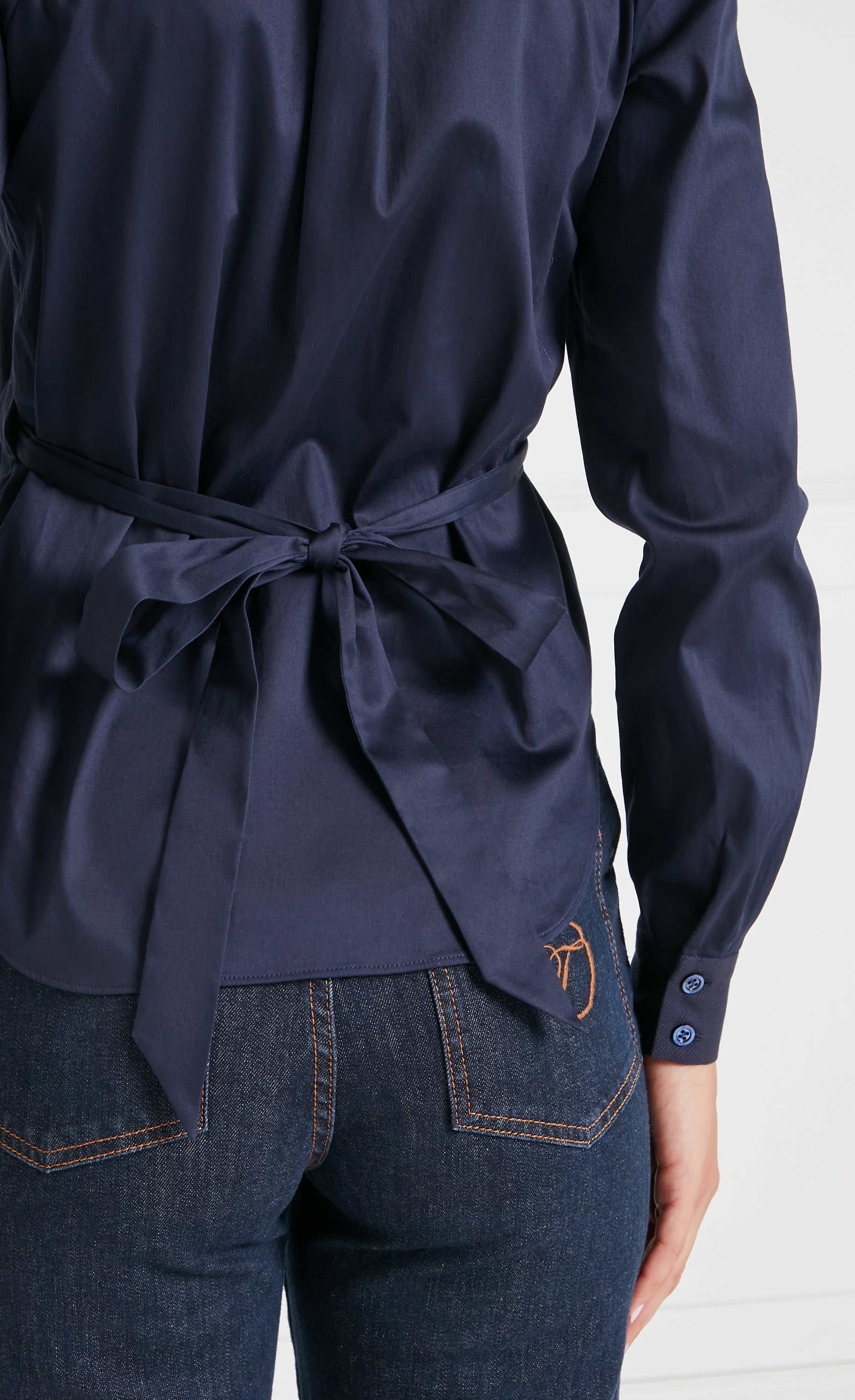 The Lucien Shirt is a tailored silhouette elevated with softly puffed shoulders and a neck tie, finished with a Swarovski crystal button at the collar... More.