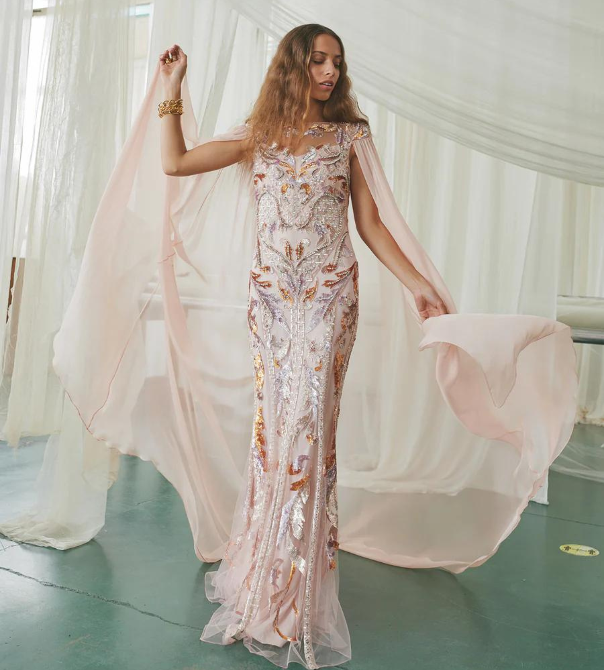 Novella Embellished Cape Gown