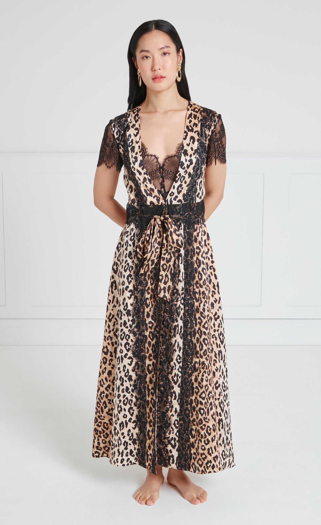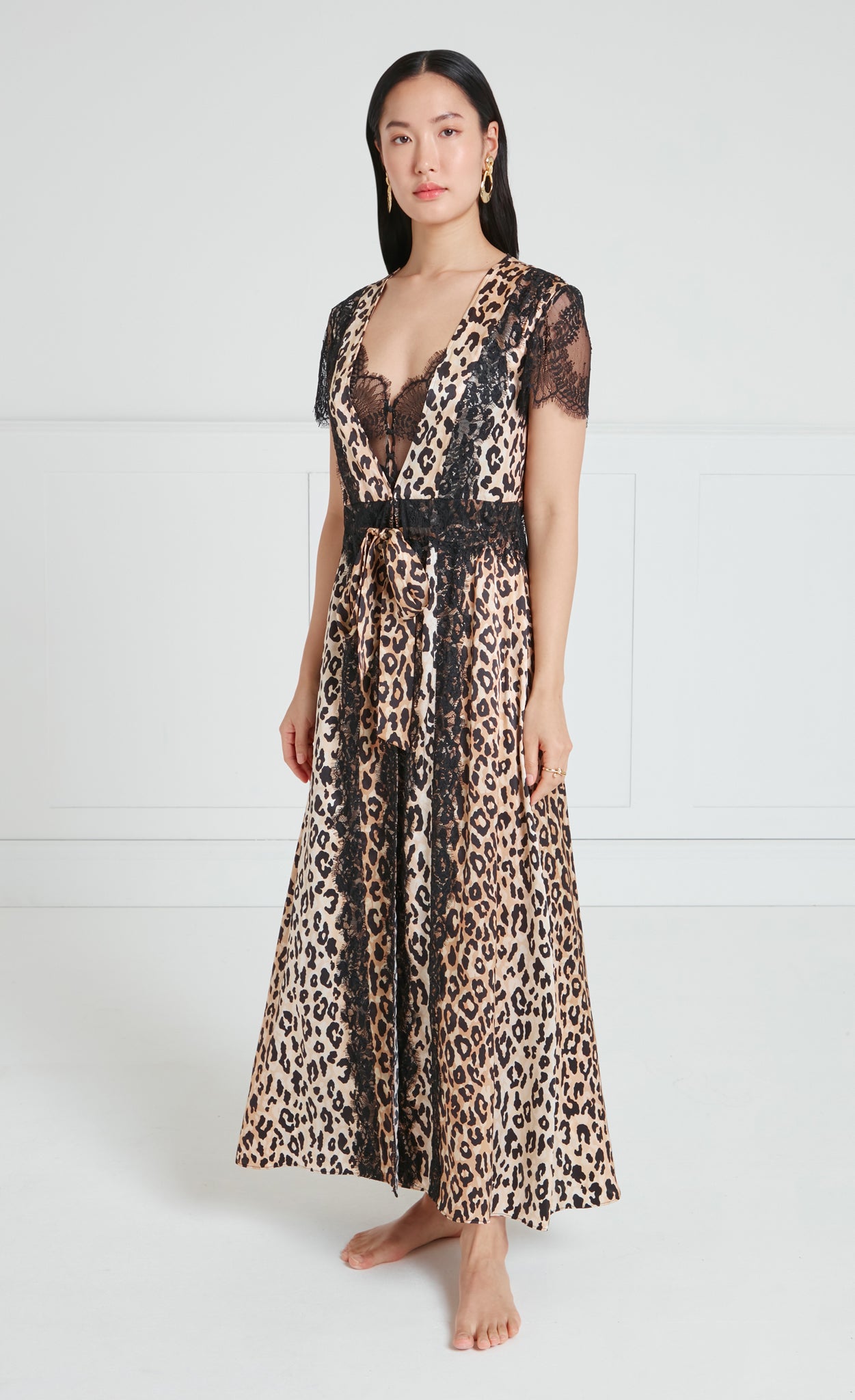 A signature blend of femininity and boldness, leopard print is a hallmark of the Temperley aesthetic. For those who embrace leopard print as a true neutral, the Nyx story is an irresistible choice. Both daring and refined, crafted in a printed satin silk for the sophisticated Temperley woman who seeks effortless glamour, even in her nightwear.