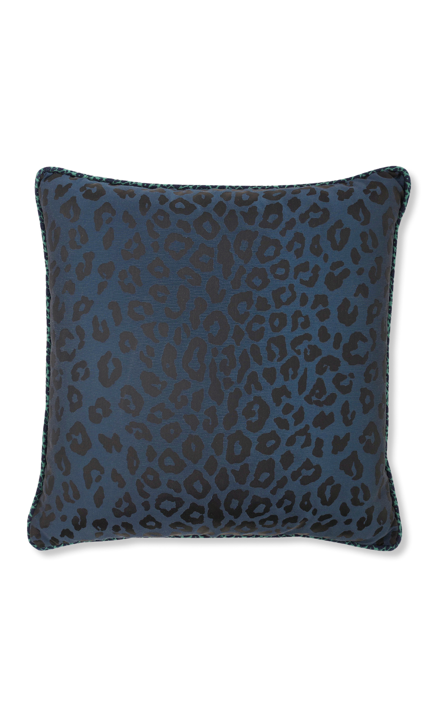 Lustrous spots of leopard embellish this luxurious jacquard weave cushion with a silk-like quality, piped in a playful coordinating leopard braid. More.