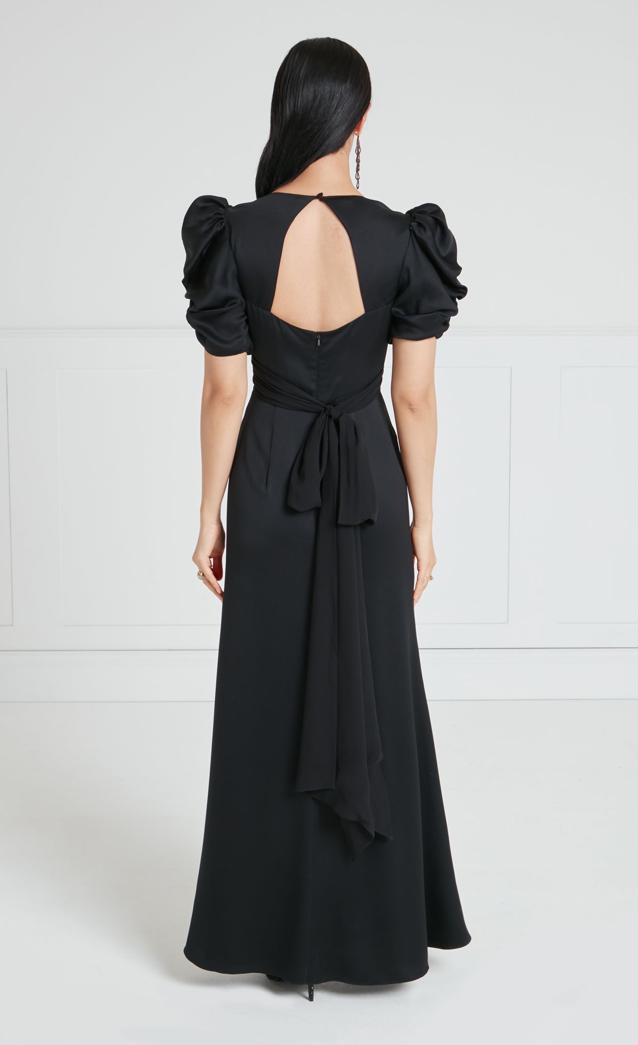 Exude sophisticated glamour in the Sofia Sleeved Gown; a floor-length dress featuring voluminous ruched sleeves for a striking silhouette. The fitted waist is accentuated with... More.