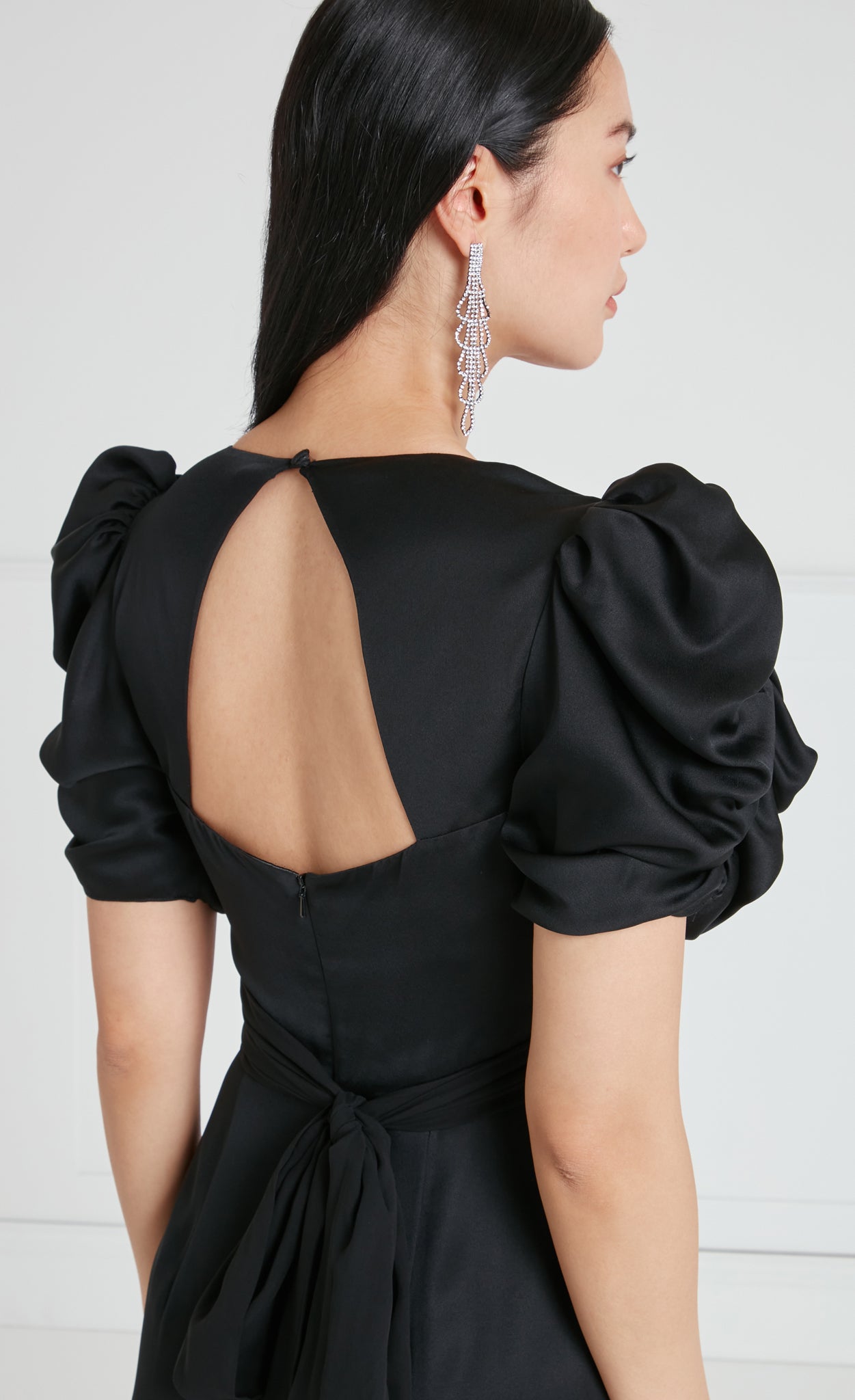 Crafted from a premium crepe satin fabric with a glossy satin finish – its soft, velvety touch enhances the luxurious appeal, combining subtle sensuality and elegance.