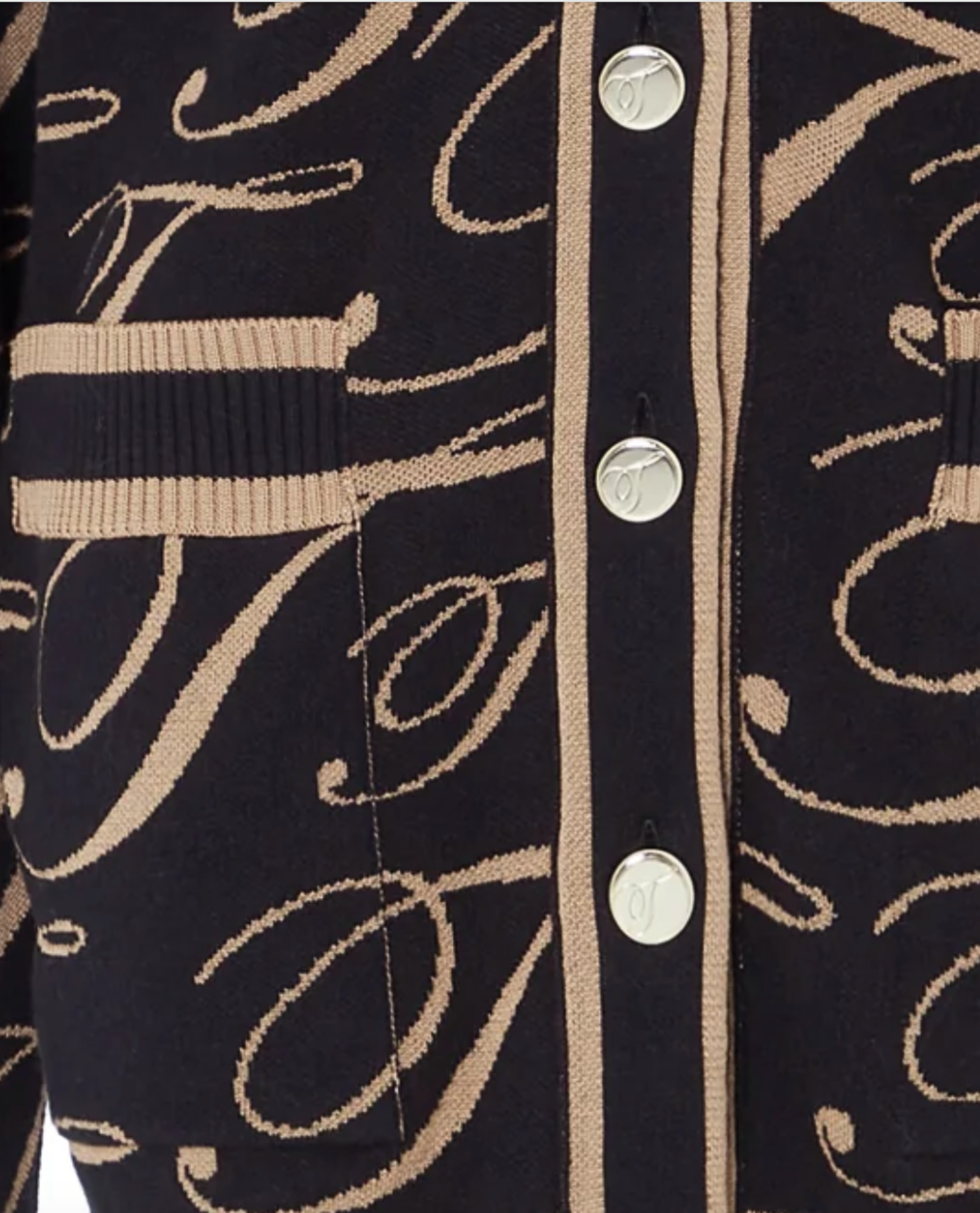 Contrast stripes meet our all-over ‘T’ logo pique jacquard in the T-logo mania story. As a relaxed button-down cardigan shape, it's been designed with sophisticated comfort in mind. Finished with functional front pockets and generous proportions, it’s a perfect jacket alternative layered over shirts or camis.