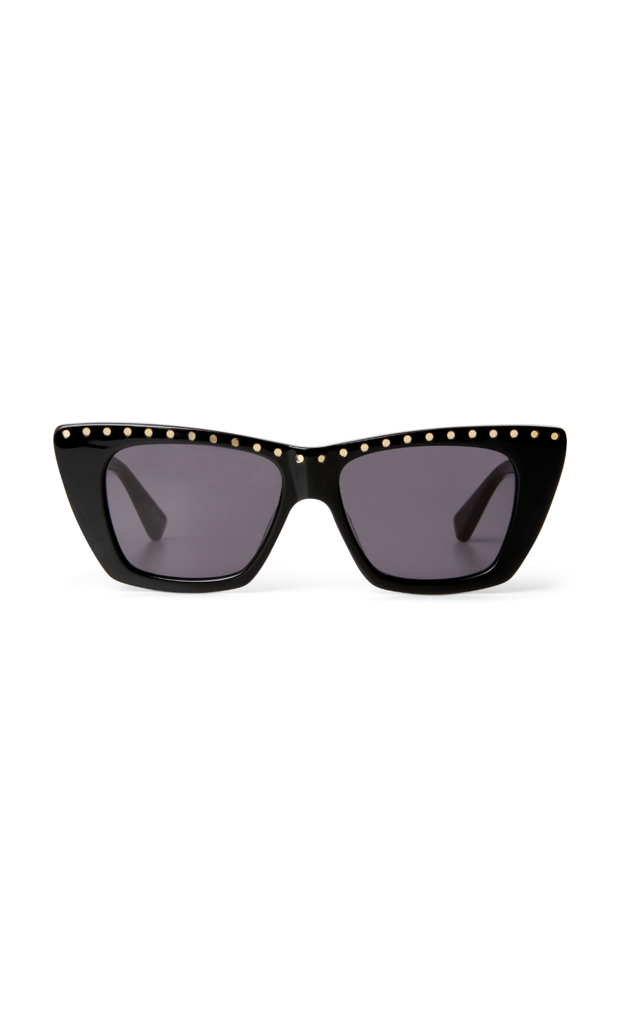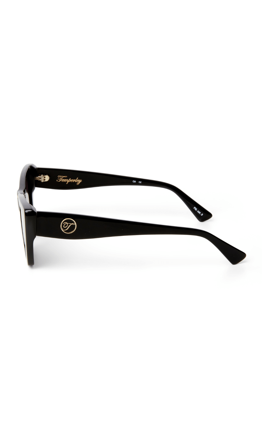 The Dolly is a reworked classic. A shape that Alice has always had in her personal sunglasses arsenal, the cat-eye is the ultimate silhouette for achieving retro glamour. Adorned with flush gold studs across the upper frame, the Dolly is both feminine and bold with a decadent Temperley touch.